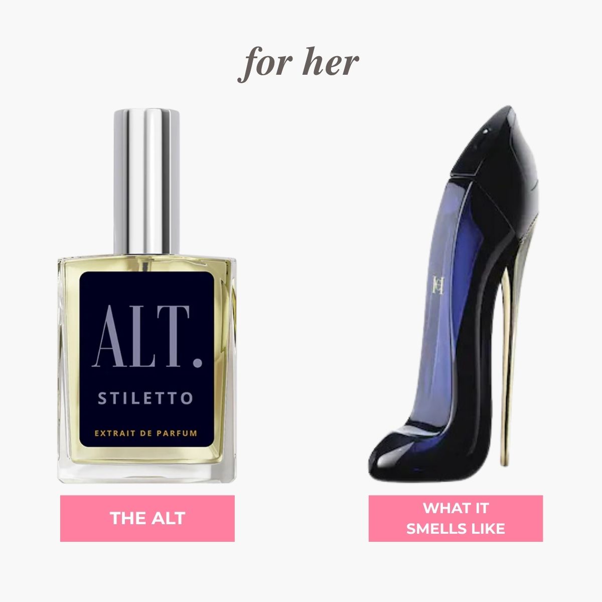 Inspired by Good Girl, Stiletto is a innovative and addictive combination of tuberose and roasted tonka bean, which represents the duality of a woman’s character.