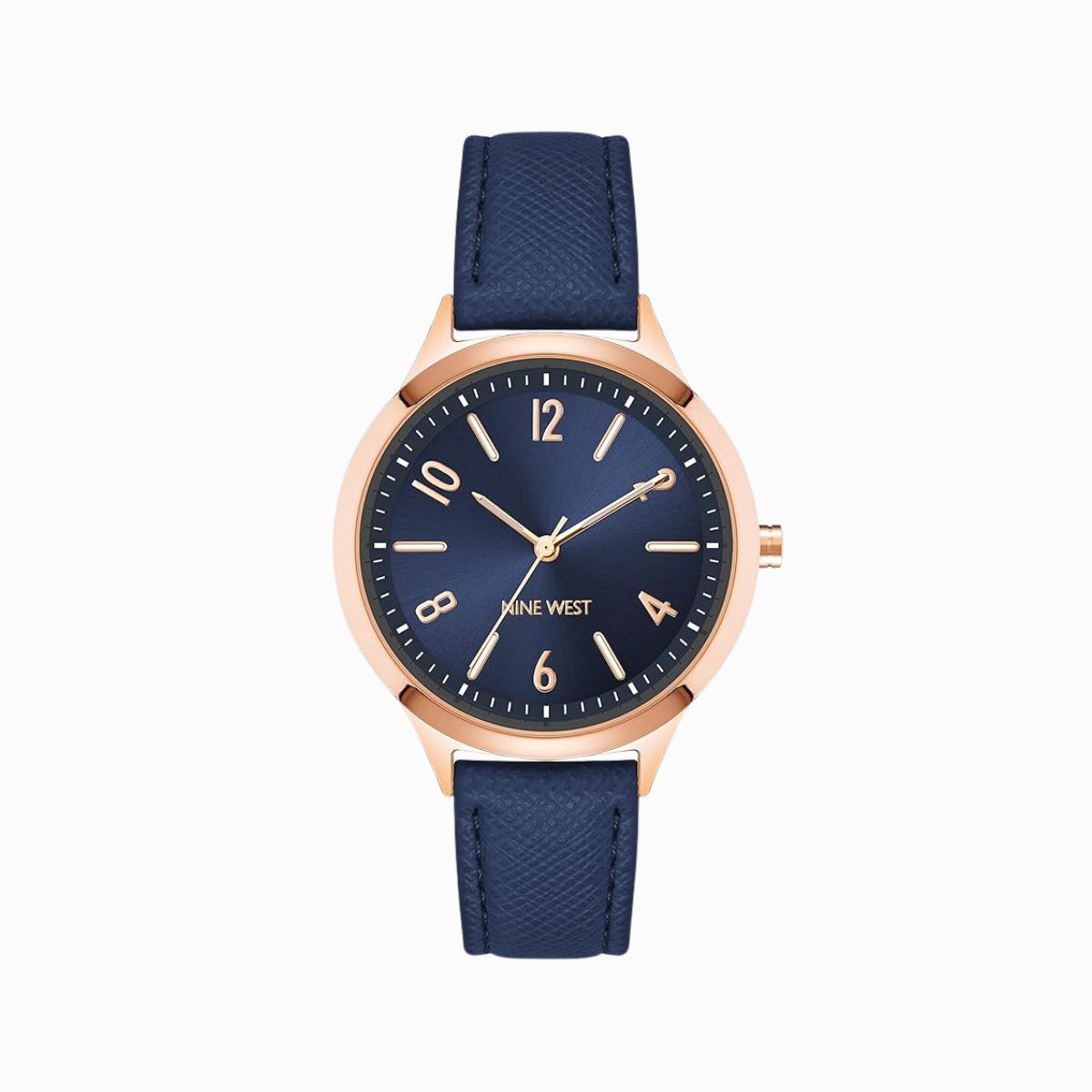 CUR 444 - Nine West Women's Rose Gold & Navy Blue Strap Watch