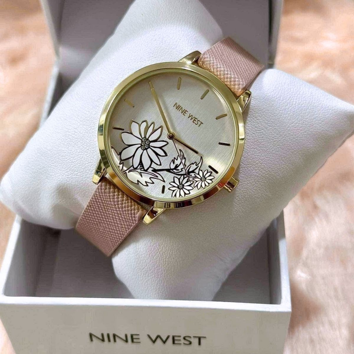 CUR 621 - Nine West Pink Strap Floral Face Watch