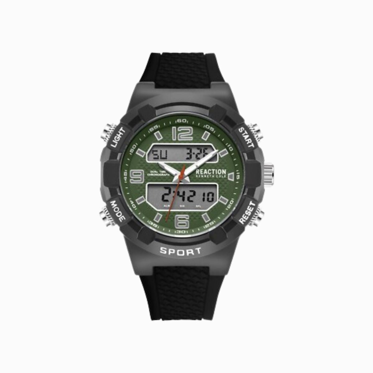 CUR 688 - Kenneth Cole Black Silicone Strap Green Automatic Watch
