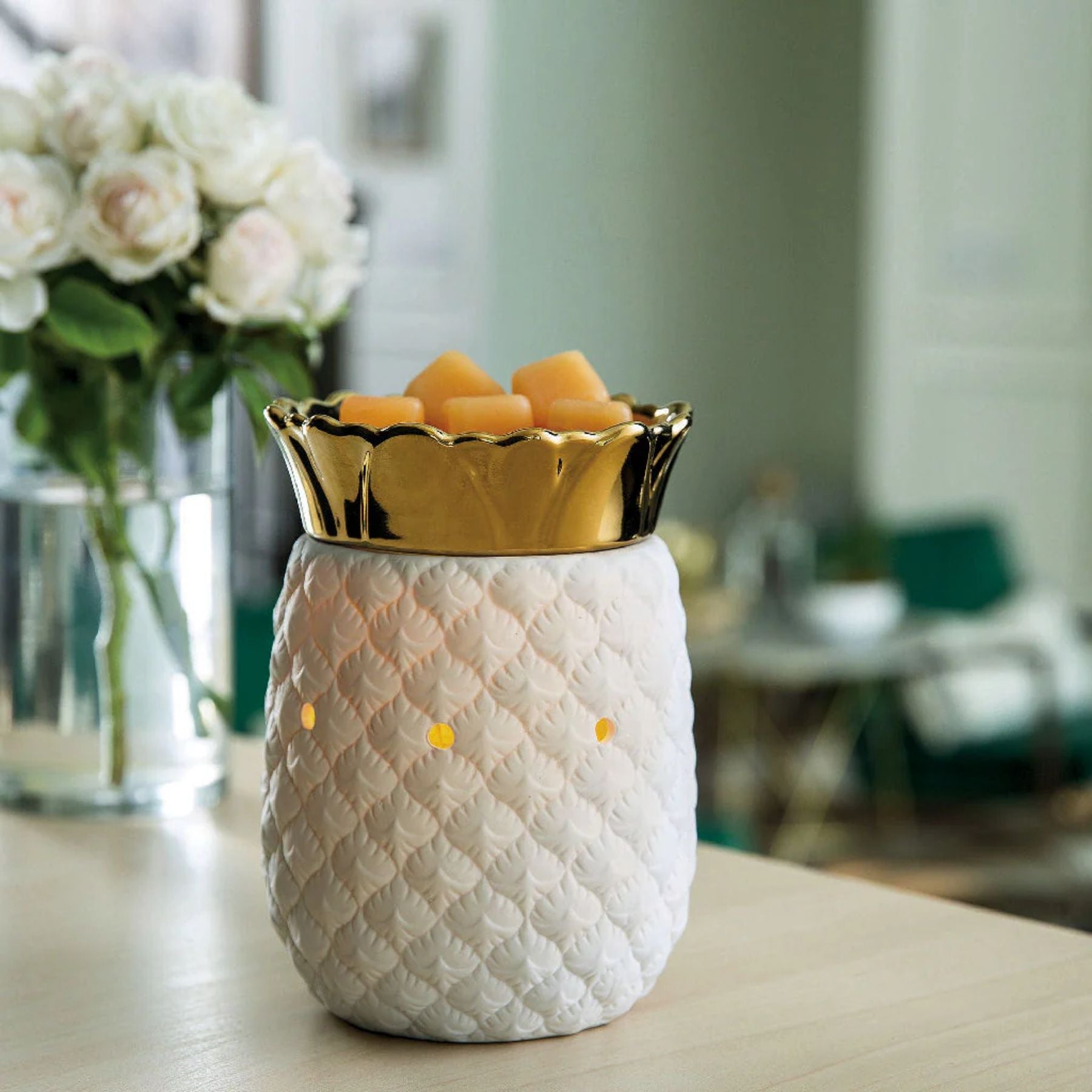 Our Fragrance Warmers use a halogen bulb or warming plate to warm wax melts or candles, releasing their fragrance.