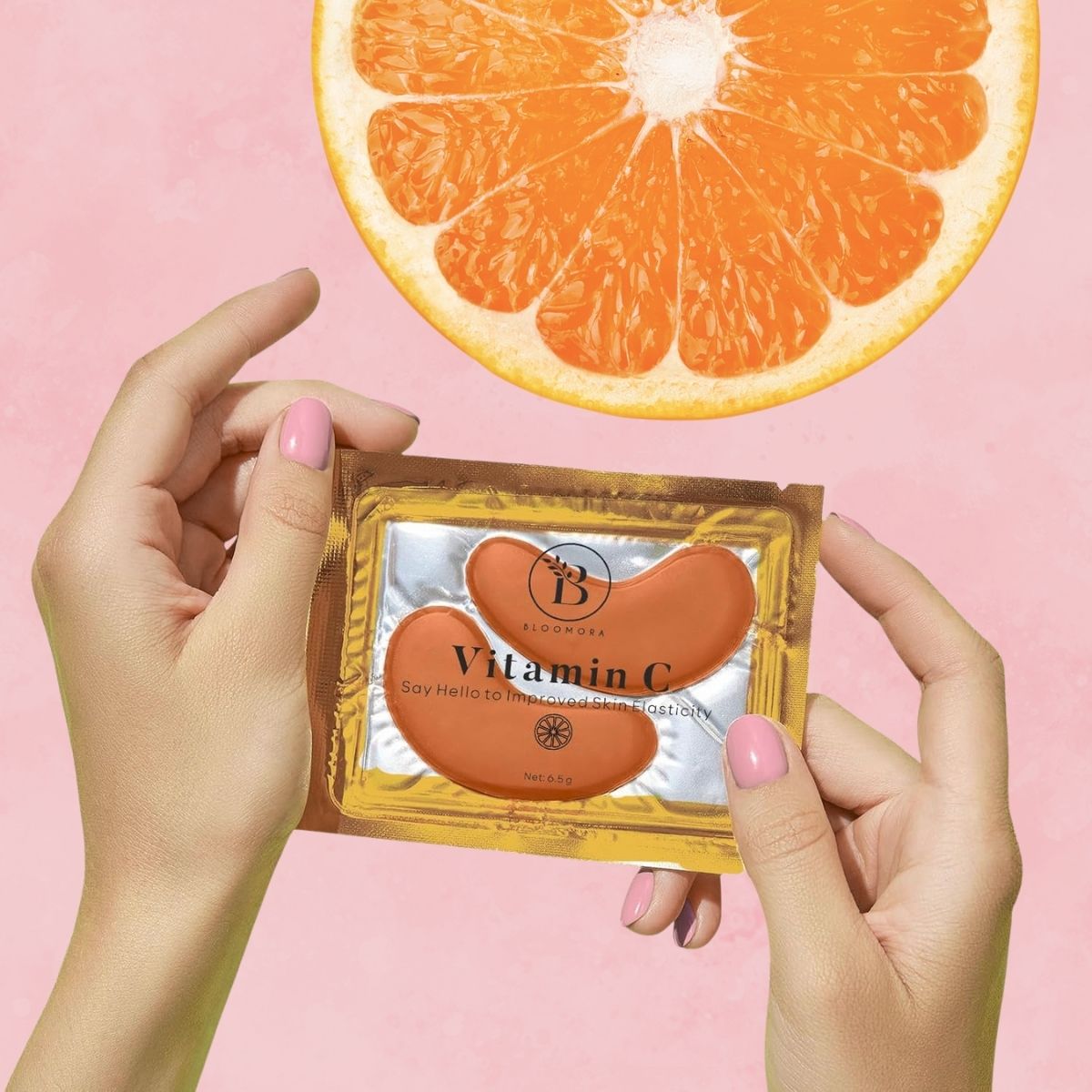 Revitalize your eyes with BLOOMORA's Vitamin C infused eye patches, enriched with hydrolyzed collagen and hyaluronic acid for intense hydration, and a radiant glow.
